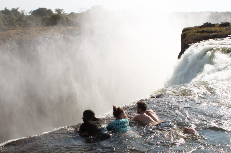 If you’re comfortable, you now have the chance to swim Devils Pool. Your guide leads you as you swim upstream in a slow current. (Don’t worry; there is a rope in place for safety.) Sit at the edge of the falls and Devils Pool, gazing at Victoria Falls, as immense water torrents just a few feet away. If you brought your camera, be sure to ask your guides to take photos and videos of you while you enjoy this natural beauty.