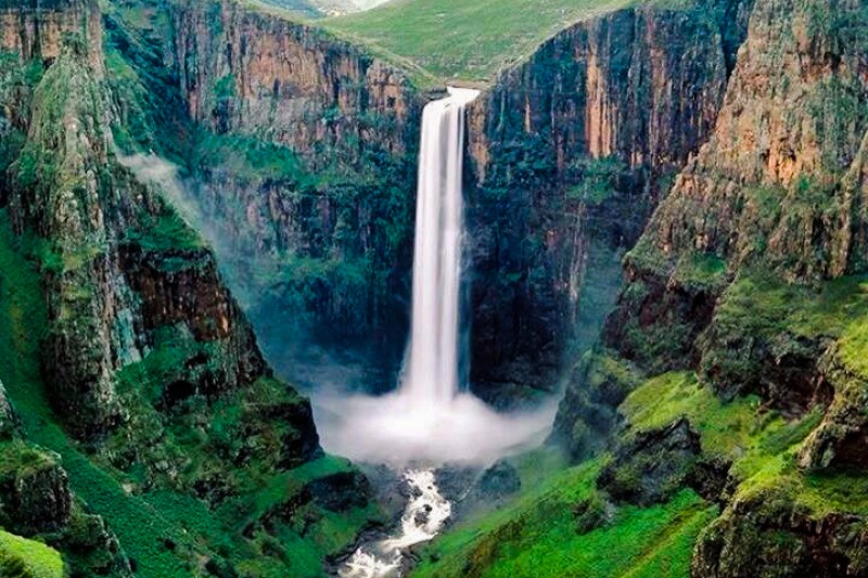 The waterfall is the 17th highest in the world and the second highest in Africa. They presents an impressive sight of two almost indistinguishable drops as the river flows over the cliff face. The river flows all year round and the waterfall is most impressive in the late summer period (February to April) when there is the greatest flow. At the end of the short dry season, October, the flow is much reduced.