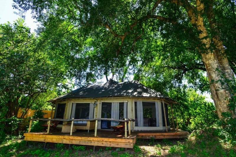 Set in the most remote part of the World Heritage Site in Mana Pools is the Kanga Pan, not too far from Chitake Springs. The 12-bedded tented camp has en-suite bathroom facilities with outdoor showers and basins overlooking the water hole. Two of the tents are a family/honeymoon tents with their own private dining and seating area. The main area has a comfortable lounge and dining area offering you uninterrupted views of a very active water hole. Relax in the upper deck lounge under the shade of a mahogany or sit on the deck below near the splash pool and enjoy Kanga − the old Africa in a new era.