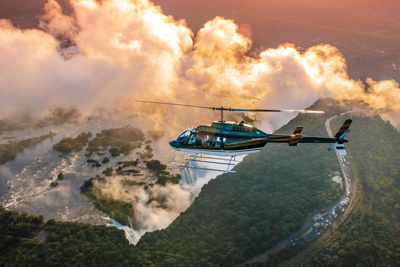 As we head back from the Batoka Gorges, taking a last glimpse of the falls, we fly over Long island on the upper Zambezi towards the National Park, home to a wide variety of wildlife species. This is an amazing opportunity to view game from the air in this vast National Park, as well as along the banks of the upper Zambezi River. There are great chances of spotting Elephants, Hippo, Crocodile, Buffalo, Giraffes, Kudu and many more as we head back to the helipad.