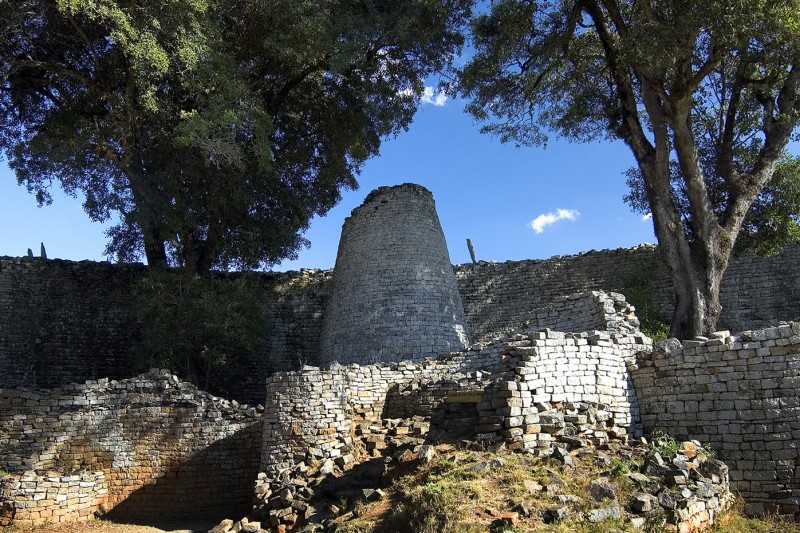 The Great Zimbabwe Ruins are one of the most important archaeological sites in Africa, giving testimony to the lost civilisation of the Shona. A great city existed here from the 11th century on, with over 10.000 inhabitants. Great Zimbabwe (“stone houses”) was a main regional trading center, its wealth associated with (Arab) gold trading. There were also trade links with East Africa (Kilwa), and fragments of Persian and Chinese pottery has been found at the site. Arab and European travellers in the 16th century sent marvelling reports home about this place and its impressive stone walls. The site was abandoned in the 15th century (for Khami) because of a lack of food and firewood. The ruins nowadays are spread out over three main areas: the Hill Ruins, the Great Enclosure and the Valley Ruins.
