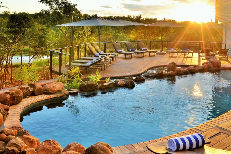 The sunset-facing 72-room Victoria Falls Safari Lodge, which boasts endless views of pristine wilderness stretching to the horizon, including a waterhole frequented by elephant, buffalo, kudu and more. The lodge is ideal for families and small groups who seek stylish comfort, privacy and space, feature a lounge and patio overlooking a small waterhole visited by bushbuck, warthog and birds.